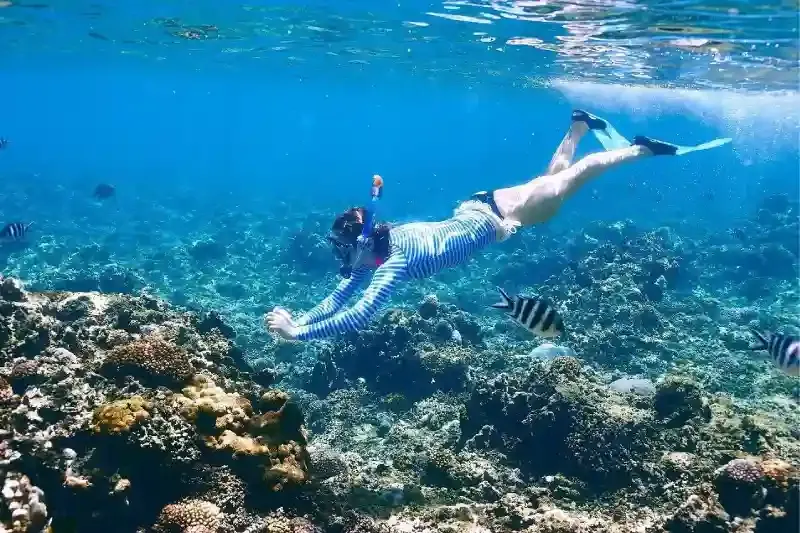 Guida esperta di snorkeling in lingua inglese, pronta a mostrarti i segreti delle acque cristalline.
